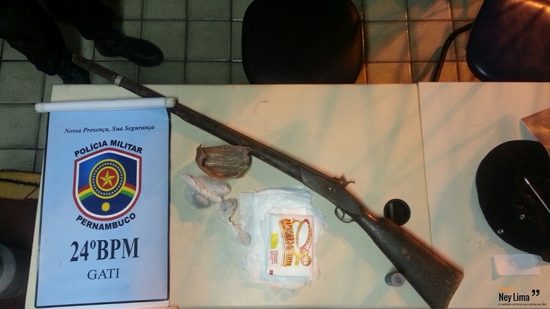 Ednaldo Luiz de Lima, 40 anos, foi preso quando o patrulhamento percebeu a sua atitude suspeita. O acusado ainda tentou se evadir, mas foi preso em flagrante com a droga e, posteriormente, encontrada a espingarda de fabricação caseira em sua casa.