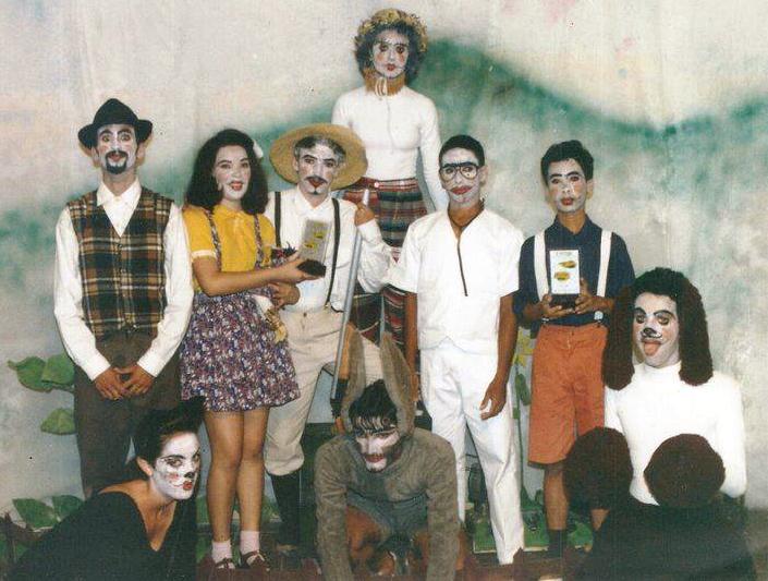 No espetáculo O Rapto das Cebolinhas, Domingos Noto fez o papel do “Burrinho Simeão” (na foto, em baixo, o segundo)